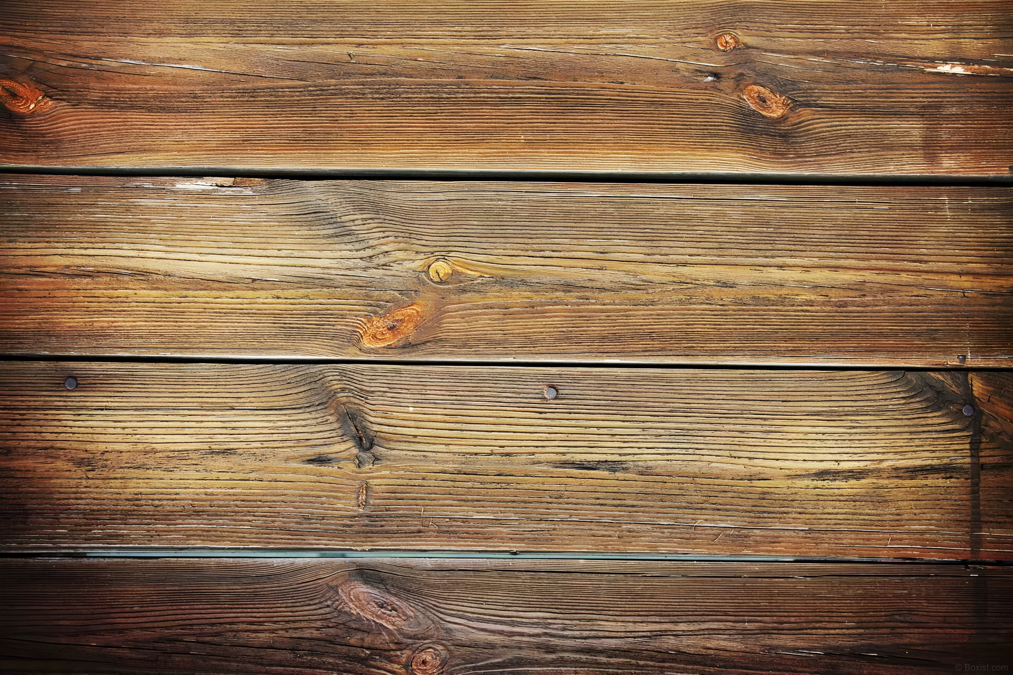 The image presents a close-up view of weathered wooden planks arranged horizontally. The planks exhibit a rich spectrum of warm, earthy tones, predominantly varying shades of brown, with hints of yellow and orange. The wood’s grain is prominently visible, displaying a natural, textured surface with intricate patterns and knots. The composition is straightforward, focusing on the natural beauty and texture of the wood. The planks are tightly aligned, with subtle gaps creating thin, dark lines between them. Small metal nails are visible, strategically placed to secure the planks together, adding a touch of industrial detail. The lighting appears to be soft and diffused, casting gentle shadows that accentuate the wood’s texture and depth. The overall effect is rustic and tactile, conveying a sense of age, durability, and natural beauty. The image highlights the inherent patterns and variations within the wood, making it the central subject of the photograph.
